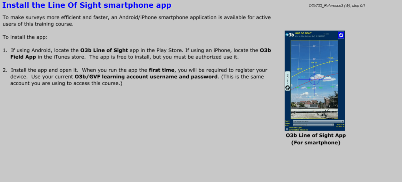 This course is required for field engineers who perform official O3b site surveys for fixed Tier 2 terminals.