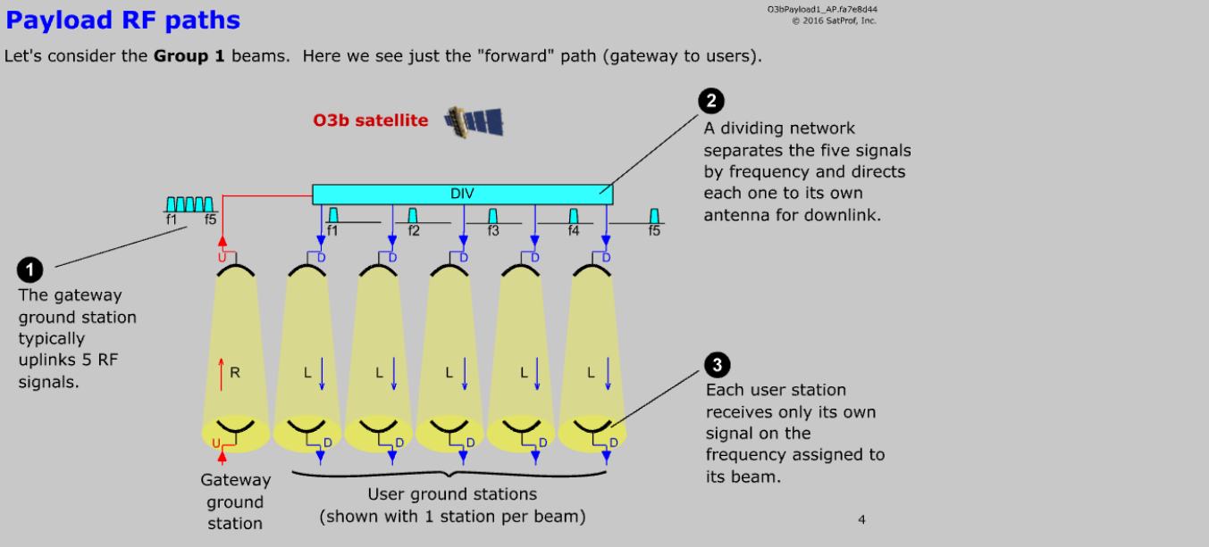 RF Architecture. Discusses the RF systems on board the satellites including how the satellites’ antennas work and are organized into beams, how the beams are interconnected into RF channels, the RF frequency channel and polarization scheme, and how the ground stations connect to each other through the satellite beams.